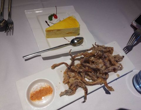 还行我的椒盐石锅拌饭有点淡 妹妹的石锅拌饭一般般 闺蜜的蛋糕她说吃了想上厕所 鱿鱼须有点腻 可能多吃了 下次换个