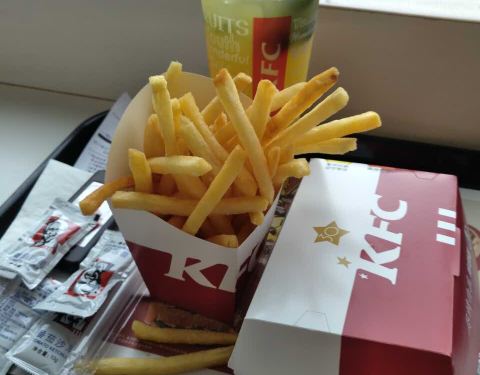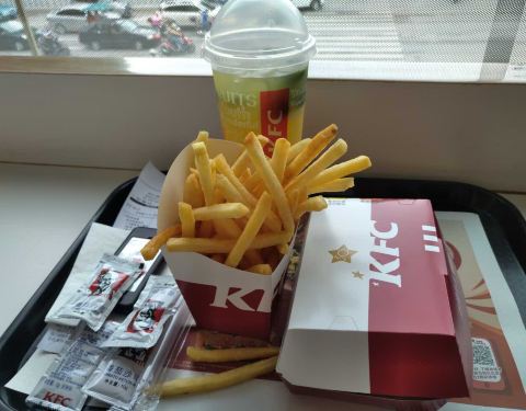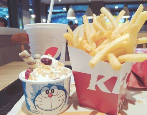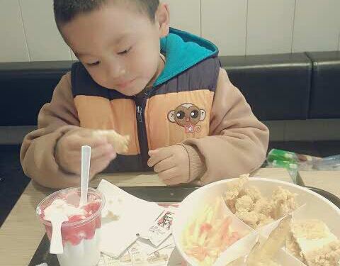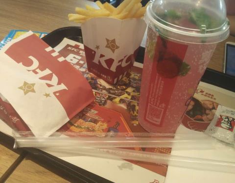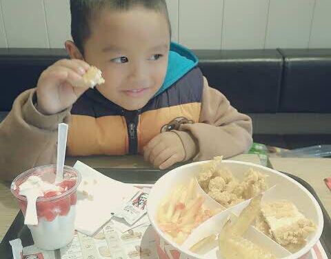 宝宝每次到饭口都要吵着来吃肯德基!!快过生日了!就满足他咯!!嘿嘿!看他那开心样!!