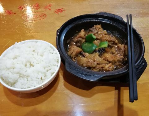 总感觉黄焖鸡米饭不如鸡公煲好吃,可能是因为鸡公煲比较辣吧,黄焖鸡真的没啥味道,每家店的味道还不一样,凑合着吃吧