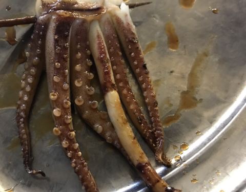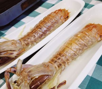 很有人气的一家宵夜档,最出名的是手臂的的濑尿虾。以前没出名时来光顾过,现在再来试试味道。 晚上7点,已经有不少人在了,环境比较吵。下单,炒圣子,烤带子,烤茄子,烤生蚝,烤金针菇等等,, 味道?用一个字...