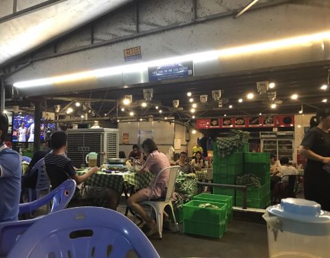 晚上都是很多客人。每次宵夜必点:生蚝(蒜蓉辣椒)……炒米粉、烧鸡翅、粥、花甲、鱼……价格忘记多少了