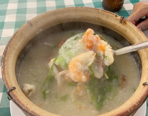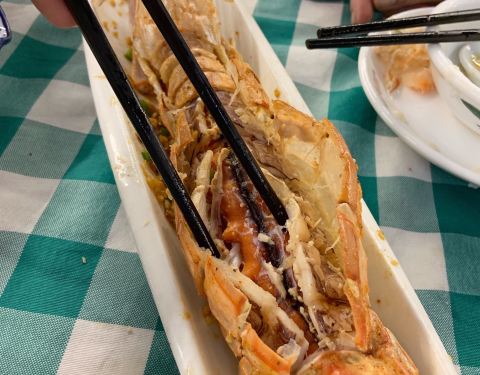 带mama来试ET拉尿虾,下午5点多就到店,一楼场面有些杂乱,以为走错,服务员爱理不理,有些莫名其妙。 看到有人沿楼梯上二楼,然后我们也跟着上去看看,原来二楼才是用餐的地方,差不多17:45服务员才正式上岗,人流也陆续上来,大概18:30基本满座,楼下开始排队。 太早到ET赖尿虾还没到货,也不知道价格,叫服务员到货立刻通知,实在太旺场,服务员都像打仗一样。 「炭烧元贝」「蒜蓉烧生蚝」肥美,蒜蓉很香,照片是中蚝,有机会要试试大蚝。 「ET大濑尿虾」万众瞩目手臂甘粗的赖尿虾,里面满满都是虾膏,濑尿虾到这种等级的肉质本来就已经很鲜甜,加上满满的虾膏,mama说再也不用等秋季的大闸蟹了。 「招牌虾蟹粥」半斤虾半斤蟹️料很足,粥底绵滑鲜甜,份量很足,两个人吃不完。