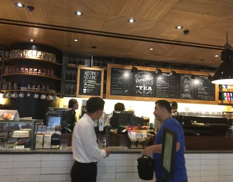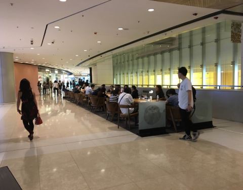 星巴克这个美国咖啡品牌在香港非常普遍,基本各大商场都会见到他的踪影。这家分店就位于香港中环的国际金融中心内,在苹果手机旗舰店附近。