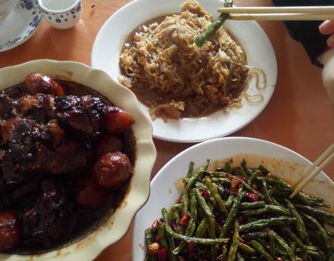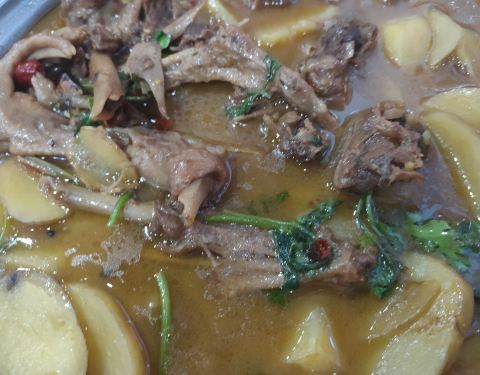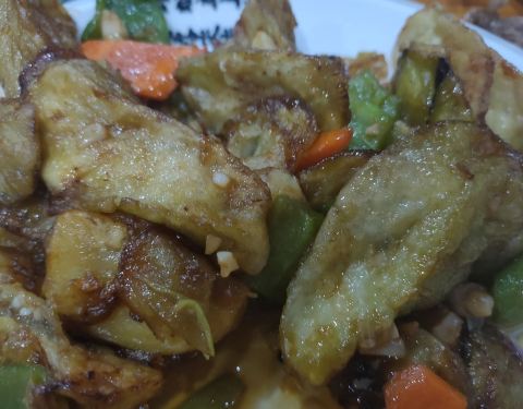点的地三鲜,还有嫩豆腐,还有大鹅炖土豆,量都特别大,地三鲜差评,块切的特别大,而且炸的时候控制油温太低,都粘在一起了,真不好吃,嫩豆腐还算可以,炖大鹅偏辣,土豆皮都没削干净,肉质太松,高压锅炖出来的