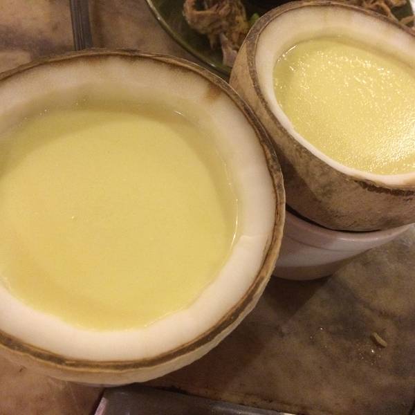 - 汤好喝,鸡也很嫩,就是少了点,虾滑也很嫩 椰子蒸蛋还可以,有点甜。之后去三亚,七块一个,这次便宜很多