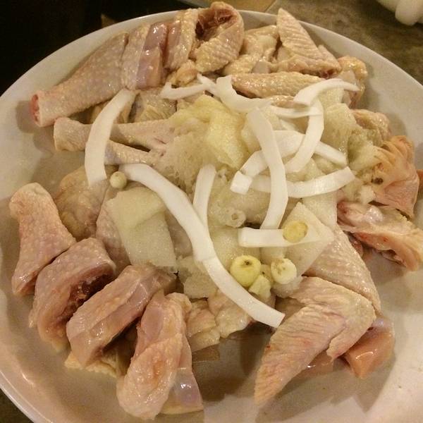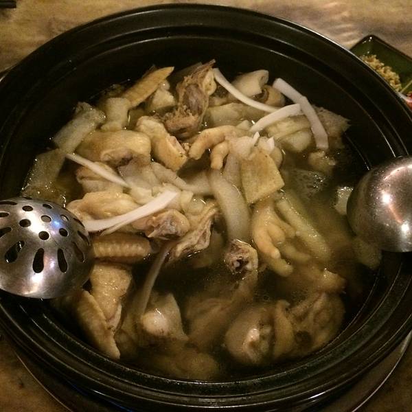 食材先生上,让客人看过后下锅。除了鸡,配料有竹笙、椰肉、小马蹄。椰子鸡是这里的主打,但是我没有吃出什么特别。鸡很老,对于吃光广东弹牙嫩口白斩鸡的广州人,表示对这个鸡肉的肉质和口感无法接受。