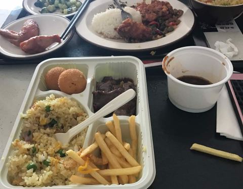 周末人太多,好多都没有了。感觉菜很油米,尤其是炒饭,蒸蛋也没有了!好久都没有吃过了,感觉现在的选择种类不多了!一般般吧,价格也在一般~