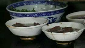 - 小吃街里面的“粉汤羊血”的评价很高,于是去到粉汤羊血店,确实人气非常的火爆
