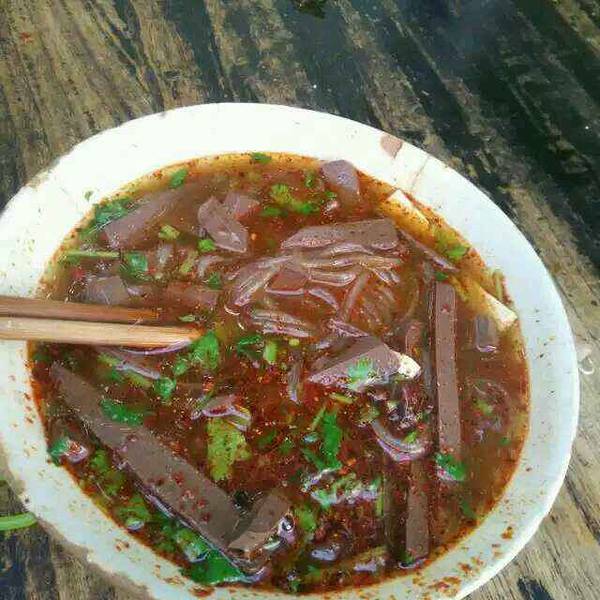 - 羊血还是挺嫩的,除了稍微有点麻辣外,还算美味!卖粉的灶头还算干净。很多人,坐着小板凳,就餐环境差了点