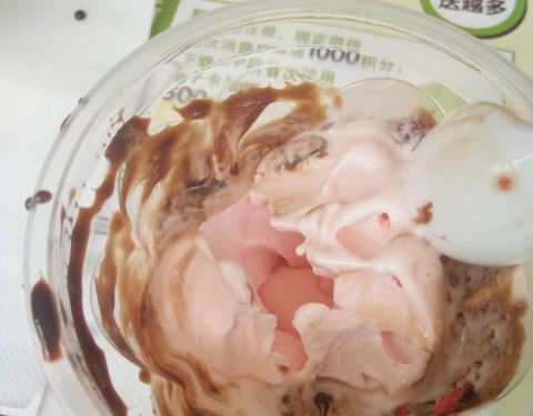 哈哈,圣代居然是中空的。强调了两次巧克力还是给我做了个草莓的,这样的服务无可挑剔!