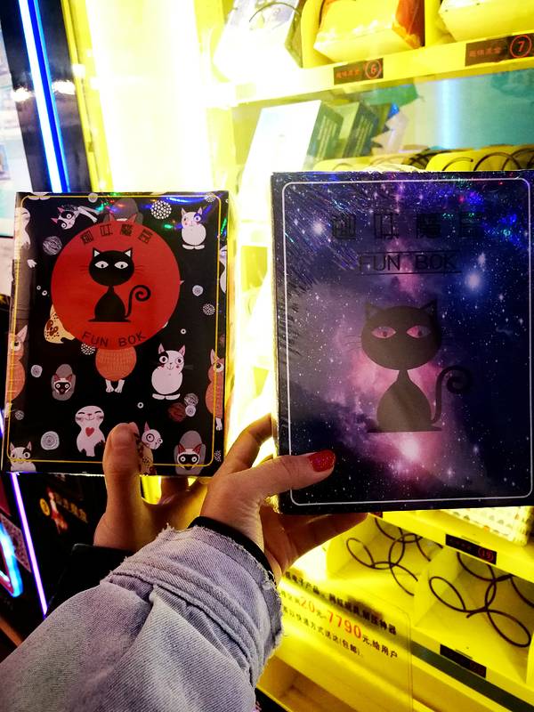 - 结果在路上,两个人决定去尝试抽个幸运盒子!晚上的天桥很漂亮的!20元一次,我是一支笔,闺蜜是一双袜子