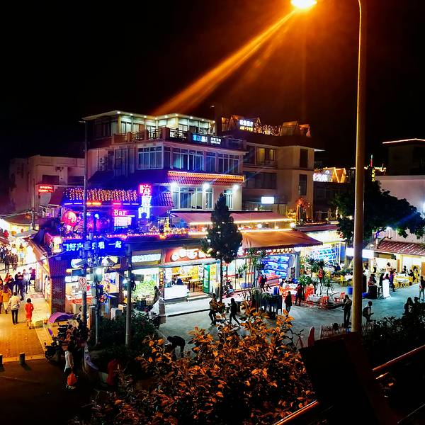 结果在路上,两个人决定去尝试抽个幸运盒...到了曾厝垵公交车站后,要走过一座天桥到达曾厝垵。晚上的天桥很漂亮的!天桥上看曾厝垵。两个人吃的很饱,放弃了原本打算吃夜宵的心,决定去尝一杯张三疯奶茶就回民宿。