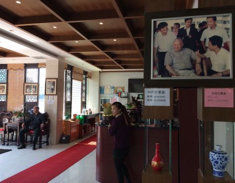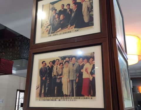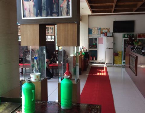 到盐官旅游,住的酒店在观潮胜地公园出入口的安澜门对面,离这家餐馆很近。附近餐馆不少,不知选哪家好,请酒店店家推荐的,说这家是开了很多年的老店。点了该店的特色菜清蒸海鲈鱼、春江宴球、茄子面筋豆腐,另外还点了酱鸭和鸡毛菜(其实是小白菜)。除了酱鸭的味道不喜欢(腌制的),其他的菜都还不错啦。酒楼展示了一些名人来盐官观潮的图片,是否光临了这家酒店则没有仔细观看。
