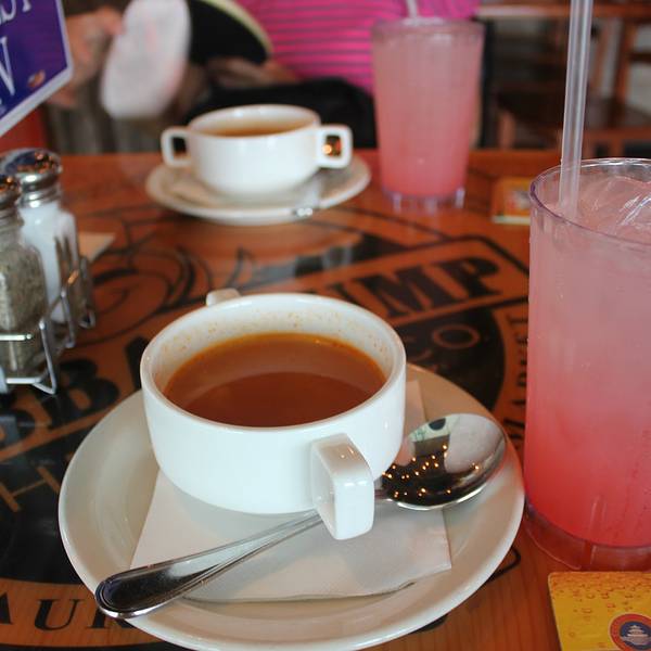 阿甘虾餐厅是太平山顶为数不多的餐厅之一,阿甘虾餐厅是以《阿甘正传》里阿甘的形象为基准开设的,餐厅位于香港太平山顶的凌霄阁内,游客前往太平山顶,可以乘坐山顶缆车,山顶缆车是香港最早运作的机动公共交通工具,来往中环花园道和太平山顶,山顶缆车的费用为成为单程28港币,往返40港币,如果购买凌霄阁套票更便宜,成人往返65港币,单程53港币。如果不乘坐缆车的话,可以在中环汽车总站乘坐15路,行驶时间大概45分钟到1小时可以到达山顶。 阿甘虾餐厅基本每天都是客满的,去就餐需要预约,如果在网上预定的套餐也是需要预约,服务员会给食客一个就餐的时间。餐厅内的灯光有点暗,所以表现的很有氛围,餐厅内分包厢、大堂和景观位,坐在景观位旁边的食客可以欣赏到部分的太平山顶的景色哦。阿甘虾餐厅内的装饰,是阿甘正传里看到过的一些道具。菜色单点的话会比较贵,所以我建议大家选择网上购买的套餐券,根据菜色的不同,晚上有分100元左右和200元左右的套餐券,要比实际店内单点要便宜,我和老婆去的时候就是提前网上订套餐券,也是提前在网上预约,我们订的是100元的套餐,内容还不赖。炸虾炸薯条,配以梅子酱,很开胃,薯条的量很大,如果单点的话,就要100多港币。鸡排意面,鸡排的味道不咋地,意面加了很多的奶油,挺香的。罗宋汤,和国内的制作方式不一样,里面的肉是牛肉。饮料也是2人份。香港山顶区域的餐厅本来就不多,而且价格要比市区里要贵,所以事先在网上预定好,要比在店内实际消费要划算很多;香港山顶区域可以休息的地方也不多,阿甘虾又能作为一个很好的歇脚的地方,所以阿甘虾餐厅还是挺值得一去的。
