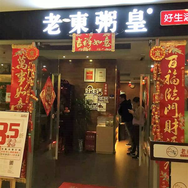 周末没事约朋友出来玩,由于朋友身体不舒服要到云南中医院取药,我也就和她一起了。吃完早饭接近上午十点钟的时候我从温泉花园出发乘坐54路到文庙站下车,在淘宝街的入口处与朋友会和,和朋友到医院取号排队看病检查身体,等到医生开完药方交给取药处已经中午了,我们就在周边随便吃了一点再折回医院取药,轮到我们取完药已经两点了。 我们在网上买了两张票就跑到电影院看电影了,看的是呼吁我们关注自然环境的《美人鱼》,看完电影出来五点了差不多可以吃晚饭了,电影院在四楼,我们出来看到三楼很多吃的就决定直接在三楼找个地方吃饭,最后决定了去老东粥皇。老东粥皇的进门处就是收银台,里面的环境挺好的,位置比较宽敞,桌面上整齐的摆放着黑色的餐具,刚入座就有服务员给我们倒茶水并拿着菜单让我们点餐,我和小伙伴不知道一份粥有多少的分量,两个人各自点了一份,服务员在旁边看到很好心的提醒我们,一份粥有四五小碗的量,够我们两个人吃了。所以我们就划去了一份粥,然后点了饼子和炒青菜。上菜的速度很快,记不得是什么饼子了味道很好吃,粥是坐落在木架上端过来的,虾粥的味道也很好喝,果真如服务员所说粥的分量绝对够两个人吃了。这里的菜品不算贵,我们两个人一共消费了68元,整体还说还是可以的。 喜欢这里的环境,喜欢这里服务员的友好态度,下次再过来这边还会再来吃美味的。