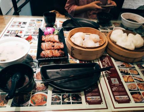 又到老东粥皇茶餐厅吃饭,今天点了一份干炒牛河、一份黄瓜无骨鸡脚,一份瑶柱鲜虾粥、一份小笼包子、一份南瓜小米红薯粥,味道依然很美。