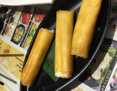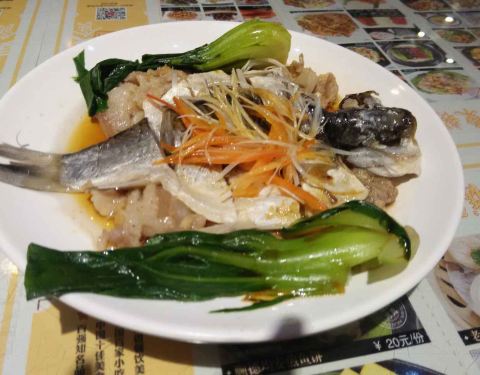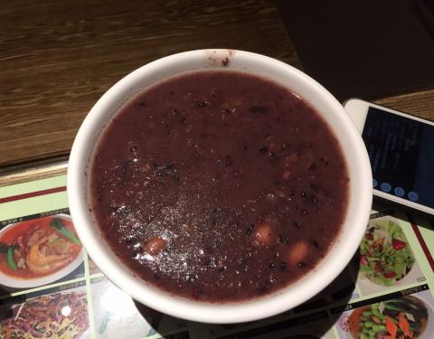 我们在网上买了两张票就跑到电影院看电影了,看的是呼吁我们关注自然环境的《美人鱼》,看完电影出来五点了差不多可以吃晚饭了,电影院在四楼,我们出来看到三楼很多吃的就决定直接在三楼找个地方吃饭,最后决定了去老东粥皇。老东粥皇的进门处就是收银台,里面的环境挺好的,位置比较宽敞,桌面上整齐的摆放着黑色的餐具,刚入座就有服务员给我们倒茶水并拿着菜单让我们点餐,我和小伙伴不知道一份粥有多少的分量,两个人各自点了一份,服务员在旁边看到很好心的提醒我们,一份粥有四五小碗的量,够我们两个人吃了。所以我们就划去了一份粥,然后点了饼子和炒青菜。上菜的速度很快,记不得是什么饼子了味道很好吃,粥是坐落在木架上端过来的,虾粥的味道也很好喝,果真如服务员所说粥的分量绝对够两个人吃了。这里的菜品不算贵,我们两个人一共消费了68元,整体还说还是可以的。