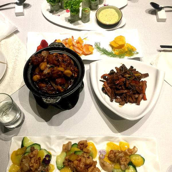 环境非常浪漫的创意菜餐厅 中餐和西餐菜单都很丰富 节日放假去的,人很少 可以安静的坐着聊天看夜景 一直觉得香河园当代MOMA这边是非常文艺的地方 蔓兰酒店也是设计新潮,有小资情调的地方 餐厅的名字叫S0 since zero 中文名是蔓兰家的四季餐厅位于香河园当代MOMA小区内 小区的门很多 从靠近蔓兰酒店那边的门进 比较近一些 餐厅的门面非常低调 位于酒店旁边矮的那栋楼的二层 晚上灯光亮起来比较好找 下面有电梯和楼梯可以上去 电梯的门非常隐蔽,第一次去最好走楼梯如果想节约停车费可以把车停在当代MOMA外面的路边 晚上没有贴条的 开进小区里是计时收费的 餐厅附近有一块不大的露天停车场 只要进小区,无论停在哪都是计时收费的 并且是人工计时,车辆进门时保安做登记 没有其他凭证,需要自己看好时间 餐厅的面积挺大的 有一面落地玻璃的景观位可以看到窗外的夜景 另一面可以看到花园景色 view还是非常好的 尤其是天黑以后,外面灯光亮起来倒影在水池中 靠窗景观位基本都是2人桌 间隙不是很大,但是也不拥挤 如果点很多菜的话桌子有点小一品鲑鱼生菜卷 摆盘非常漂亮,味道也是爽口的 有点类似越南春卷的做法 外皮很薄,蘸酱也很好吃 量也挺大的芒果虾球颜色很漂亮 用芒果包在虾的外面,有甜辣酱的味道 虾肉非常嫩,口感是滑滑的 很适合夏天吃的一道菜炸豆腐的摆盘是长的盘子 2个人吃的话量不算少了 豆腐外皮有点酥 表面撒的调料很好吃这道菜名是花枝 就是乌贼的意思 搭配彩椒和黄瓜的炒菜 摆盘漂亮,味道也是不错的开始不知道菜量不小,怕吃不饱,还点了三杯鸡和茶树菇小鸡 三杯鸡的味道也是不错的,很入味 茶树菇小鸡也算是非常入味的一道菜 相比其他几道很一般 中餐菜量挺大的甜品也是长的盘子 有6块,两个人吃刚好 水果很新鲜,有火龙果,草莓,蓝莓三种口味 下面脆脆的也很好吃芦荟玫瑰花茶是冰的 里面有芦荟果肉 颜色漂亮喝起来也很清爽 不是很大杯餐厅的气氛和景致都是不错的 服务上还有待加强的 隔壁桌坐了外国人 菜单的英文翻译不是很准 上菜后发现不对 我们点了一杯无酒精鸡尾酒 上来后发现是有酒精的 最后还是我们自己买单了这杯酒 如果同样的事发生在其他餐厅 多数情况应该会重新再调一杯的 但是这边服务员就是什么都不懂的样子 不想浪费时间就没有多废话了 这件事有点影响心情 也是让人对这家餐厅的印象大打折扣 价位算是正常的,2个人一共300多 菜量是足的,最后没有吃完 但是服务是不够好的 基本上是为了环境而来