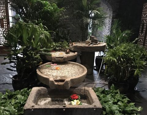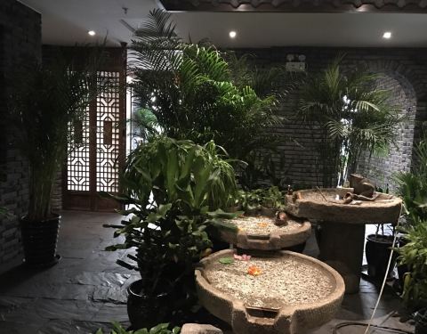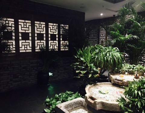 这家餐厅的装修古韵十足,青砖灰墙上悬挂着写意的灯画,纸质吊灯也充满着古朴的中国风。走进这里,就仿佛踏...