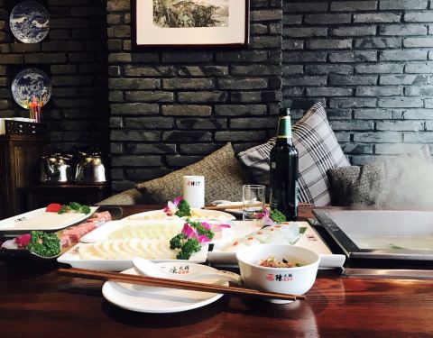 这家餐厅的装修古韵十足,青砖灰墙上悬挂着写意的灯画,纸质吊灯也充满着古朴的中国风。走进这里,就仿佛踏上了宽窄巷的石阶,让人不由心生畅快。店内设立的自助调料台,十分人性化,想调制各种风味均可。锅底推荐藤椒鸳鸯锅,足足有四个格子,可以满足大家不同口味的需求。