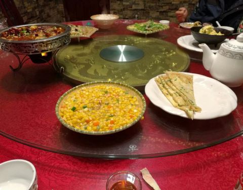 到达石家庄正定机场已是晚上7:30分以后了,入住了酒店,简单收拾一下,就问了酒店前台,介绍我们出门右转,走400米,有个中餐饭店,可以炒菜。远远的就看到一个霓虹灯在闪烁,大约走了7-8分钟,旁边都是庄稼地,看到霓虹灯指示右转20米,一个农家大院子,进去后还好人家没有打烊,点了几个菜,上菜还挺快,菜品味道还真不错,快九点了,人家来说,先结账吧,收款的要回家了。我们吃完都快10点了。