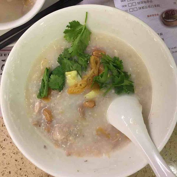 - 早上没人排队,要了菊花茶,红米肠里的虾仁很大,粘着花生酱吃非常好吃!炸云吞很脆很美味,