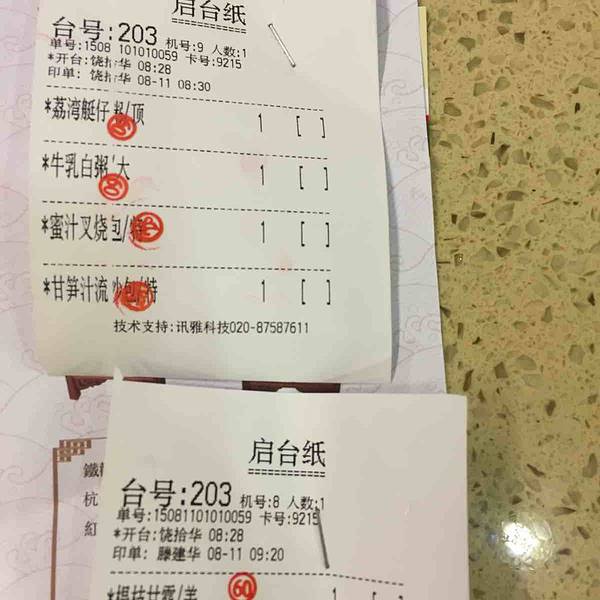 - 两个人点这么多吃不完,菊花普洱茶真的不错!那个粥刚喝起来有点腥,后面就很鲜美