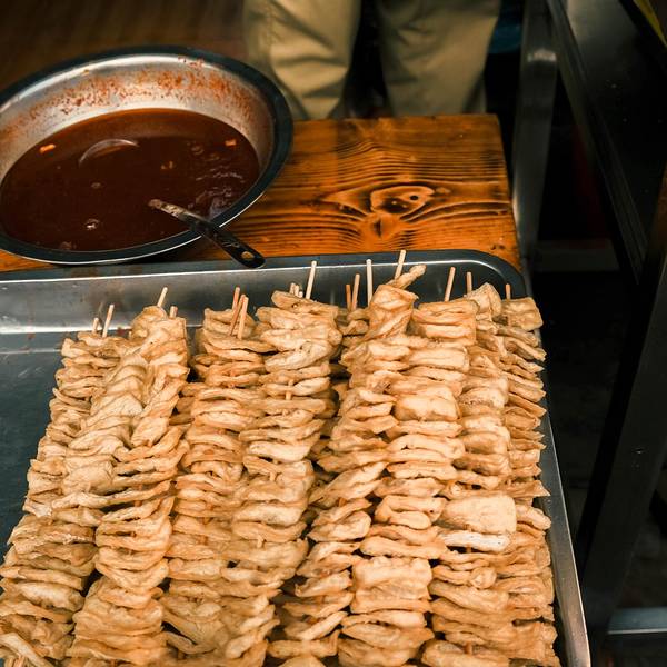 钟楼巷不大,名气也不如 桃园 老街,是个比较小众的宝藏地方,保留了老式民居,弥漫着各种街头小吃的烟火气,适合文艺爱好者前去扫街。巷内有一座古钟楼,曾经饱受战火的侵袭,钟身上留下了很多弹痕,如今一切都加上了美食的滤镜。傍晚时分,骑着脚踏车,感受秋风拂面,钟楼巷早已人头攒动,各种小吃香味四溢,炸串、锅贴、煎饼、汤圆、烤鸭肠……看似平凡的小店,有着吸引人味觉的魔力,串串香是必点的,几乎人手一桶,放学下课的学生,下班通勤的白领,这一刻,他们都是香味的俘虏。锅贴在锅里发出滋滋的声音,油端子在咝咝啦啦地上下翻滚,炸串被刷上一层浓郁的酱汁,目之所及都是幸福的味道。
