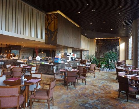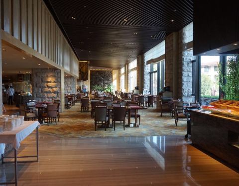 常州香格里拉大酒店自助餐厅,经常有团购!餐厅落地窗能直接看到酒店前面的人工湖。餐厅提供中西式自助餐服务。