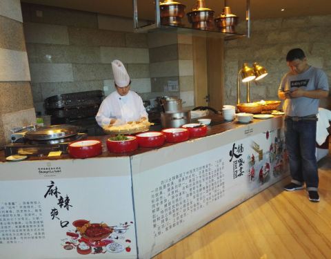 - 由于周末有些旅游团来这里,很多中年人在吃早餐的时候很吵,餐厅显得较乱。早餐品种还算丰富,服务也算尚可