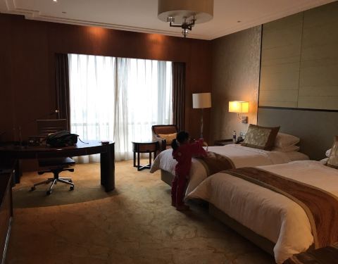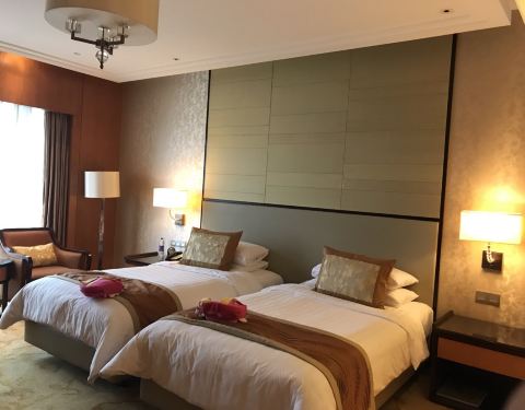 国庆5号中午12点到达酒店,位置不错,高速下来就到了,办理入住被告知下午2点办理(没有一句客套话,比如:帮你看看有没有空房间帮你先办理之类的)。我们只好等,十分钟后,问前台服务员酒店周边有什么可以带孩子逛逛的,说后面有个湖,酒店左右都可以过去,我们两边走了一圈,大门都是锁住的!酒店隔壁香宫旁边有一大推美团外卖的垃圾!房间升级豪华阁也没啥特色,和一般三星级酒店设置差不多,就是房间大一点!第二天退房,小孩在旋转门上推了一把,一出来就被酒店清洁阿姨说了几句,说我们留了手指印了!我表示小孩不知道,没有考虑到,也没有什么提示要求客人不要去摸大门的玻璃,她就BBB的讲小孩子什么什么的,我真是很无语!!!服务真是一般一般一般!