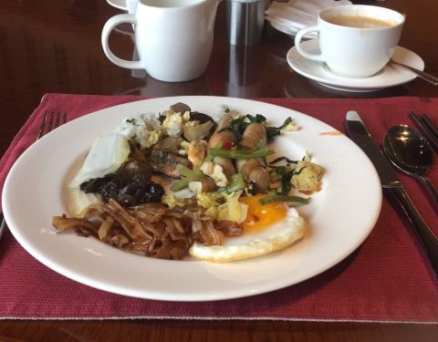 由于周末有些旅游团来这里,很多中年人在吃早餐的时候很吵,餐厅显得较乱。早餐品种还算丰富,服务也算尚可