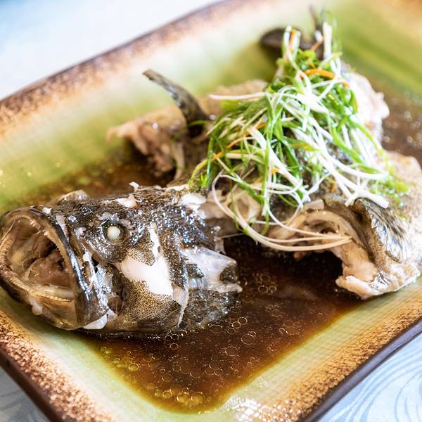 浪漫海岸所在的茂名电白区是个以海产丰富而闻名的地方,都说如果不吃海鲜,就等于没来过电白。所以特地在浪漫海岸海鲜城吃一顿新鲜的海鲜。海鲜城的包房环境不错,一进门先是一个喝茶聊天的茶室,旁边有出菜间、...浪漫海岸所在的茂名电白区是个以海产丰富而闻名的地方,都说如果不吃海鲜,就等于没来过电白。所以特地在浪漫海岸海鲜城吃一顿新鲜的海鲜。海鲜城的包房环境不错,一进门先是一个喝茶聊天的茶室,旁边有出菜间、洗手间等。再进去才是一个对着海边的餐厅,餐厅出去还有一个可以看海的大阳台。食不厌精的广东人,从四样不同的蘸碟开始:沙姜豉油、甜辣酱、芥末豉油、酸甜酱。餐前小吃是烤得酥脆的秋葵,蘸上芥末酱油,竟有点吃芥末味薯片的错觉。广东人饭前必先喝汤。在海边最先上的一定是杂鱼汤,又叫鱼仔汤,是粤西一带最简单却也是最鲜美的做法。这些小鱼就是我们早上在海上墟看到的那些,新鲜拖网回来的各种小鱼略煎一下,让表面焦化,然后趁热冲入沸腾的滚水,再放入海盐和葱段,这时一锅白如牛奶的杂鱼汤就煮好了。这是白灼明虾+白灼花螺+原只蒸花蟹的海鲜拼盘,越是新鲜的海鲜,越要用最简单的烹饪方式,保持其本身的鲜美,比较讲究的老饕,会先吃蟹,再吃虾,最后吃花螺。味道由淡与浓,才不至于让舌苔尝不出其中的鲜美。这三种海鲜适合蘸的酱汁也各不相同,蟹肉最鲜甜,可以直接吃或者配一点点醋,而白灼虾适合蘸沙姜豉油,花螺最多人选择芥末豉油或者甜辣酱。香油白切扇鸡是两广地区最有代表性的菜,可以说是无鸡不成宴。首先选鸡就很重要,一定要用足月的走地大剦鸡,不能用饲料鸡。整只用将滚未滚的虾眼水慢火浸熟,然后抹上一层本地香浓的花生油,再斩件上桌。为保证鸡肉不柴,绝不可用猛火。完美的白切鸡是鸡肉刚熟,而鸡骨骨髓略带一点红,这样的鸡肉滑皮爽,入口一阵浓浓的鸡肉香味便会填满口腔。这个沙白螺冬瓜盅简直就是一件精美的艺术品,厨师出神入化的刀工可见一斑。冬瓜和沙白螺本是绝配,平时简单的家庭版沙白螺加点冬瓜滚汤,已经鲜得快要掉眉毛。这个冬瓜盅还加入了鱼丸蟹柳等,味道就更加好了。清蒸石斑鱼,粤菜海鲜的代表,同样的简单的做法,却很讲究火候。鱼肉刚熟透,而鱼骨中心一点红。是为蒸鱼最高境界。石班鱼皮的胶原蛋白丰富,入口弹牙,鱼肉爽滑却又不削,这也是我最喜欢的鱼。鲍汁金瓜野生菌,新鲜的各种菌类放在南瓜里一起蒸熟,淋上同样鲜美的鲍汁,加上精致的摆盘。同样是色香味俱全的一道菜.墨鱼饼拼电城蚝炸,这两样都是电白本地有名的小吃,墨鱼饼剪得表面香喷喷,肉饼却非常弹牙。而蚝炸更是把外酥里嫩演绎到完美之境,外面那层薄薄的粘米粉加蛋浆炸得酥脆,而里头的蚝仔却依旧嫩滑带汁。虽然这是普通的街头小吃,但并不是每一个厨师都做得好,要么是蚝仔不新鲜,要么是炸得过火,蚝仔都变得干硬,要么油温不够导致表皮吸油过多。把街头小吃做得完美极致却也是非常不简单的事。白灼水东芥,水东鸡心芥是来这里一定不能错过的一味青菜,水东的鸡心芥是非常神奇的蔬菜,只有在本土种植才能保持清甜无渣,一到了外地,不同的风土就马上变得苦涩。如果说有什么蔬菜是最恋家的,那非水东鸡心芥莫属了。连平时不太吃青菜自认是绞肉机的我,都抢着把这碟水东芥一扫而空。