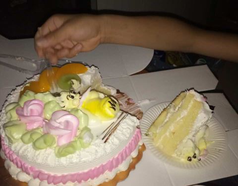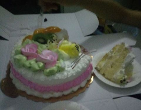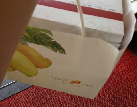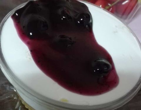 买的是水果蛋糕,一个蓝莓,一个是芒果,蓝莓是蓝莓汁,芒果是真芒果