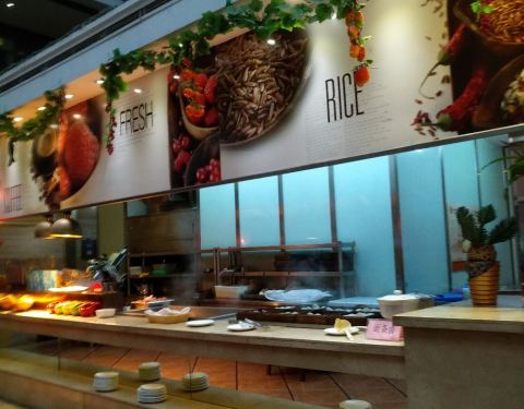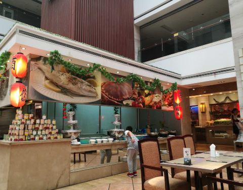 自助餐厅环境真不错,大厅中间是水池里面还有一架钢琴,座椅挺舒服,早晨餐品种还是很多的,就是炒菜少,西餐面包,水果品种多样,冷饮热饮还可以,还有现煮的混沌和煎蛋,吃饭的人少一点都不吵,比较安静,吃得比较舒心。