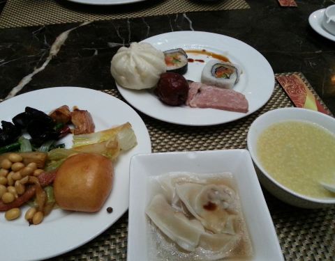 早餐种类是很多,但很多都不够热,牛奶是泡的,豆浆一下就没了,馄炖也太硬