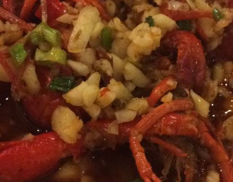 - 蒜香虾是微辣又用蒜粒爆香的,还比较入味,油焖的味道却真心一般!也许是期望值过高,所以有些小失望
