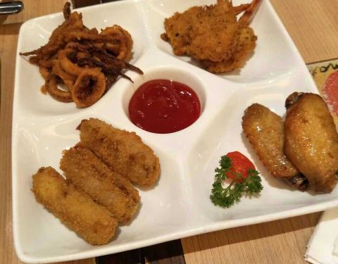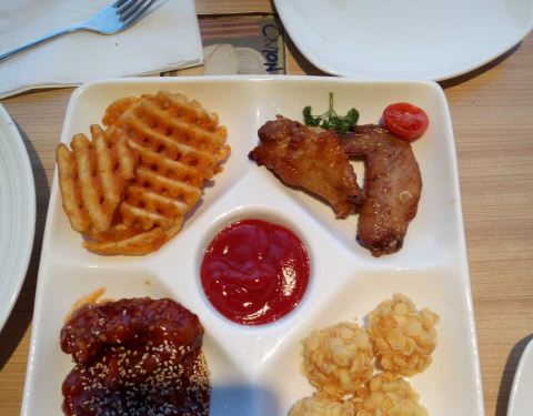 ...一层、二层门店,店挺大,用餐环境很不错,有现做的多种口味的披萨,鱿鱼圈、烤翅等小食,味道很不错