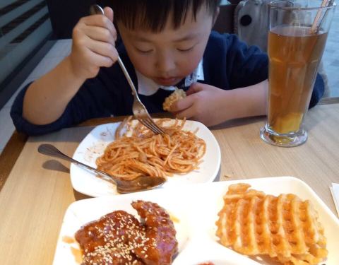 周末带孩子来必胜客、亲子时间、周末多陪陪孩子。儿子在必胜客很开心