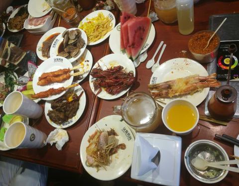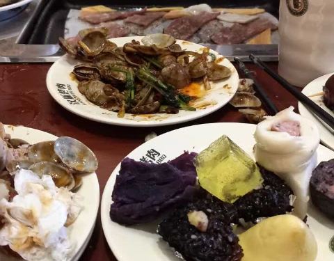 - 烤肉倒不错。我们是晚上来吃的自助,时间还宽松点儿,他们家的自助肉的种类真多,有10好几种。啤酒一般