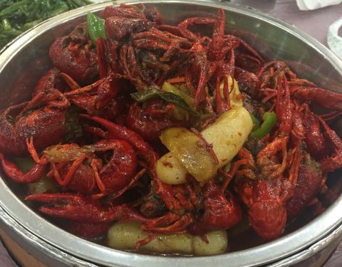算是一家新店吧,在园区里面,不算是沿街店铺,找的时候没有那么容易找到。到了店门口就可以看到商家的lED屏上面有58折的活动,非常吸引人。 环境要比外面的小龙虾店高出好几个水平线,宽敞明亮,二楼还有很大的包间。 除了咸蛋黄没有没吃到,留有遗憾之外,其他口味基本都尝试了一遍。小龙虾个头都不小,白灼和冰镇的龙虾个头相对于其他口味的要大一些,口感真的是棒的没话说,这家的货源真的是非常好,龙虾干净,清洗的时候龙虾的头处理的也非常干净,冰镇的吃上去非常的清甜。 十三香算是无功无过吧,没有什么出彩的地方。黄焖里面的年糕非常软糯,非常喜欢,小龙虾的口味偏甜口。蒜泥味很入味,不介意有口气的小伙伴可以试一下。 最最最让自己惊喜的是这边的虾姑,竟然只只都有膏,椒盐的也非常入味。 这个试营业期间一周连刷了两次,体验都是非常棒的,希望能够保持下去。