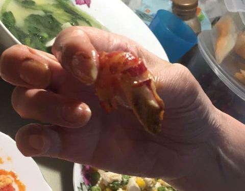 推荐黄焖,偏甜更适合上海人的口味。 餐厅配备了一次性手套,吃的时候很小心但还是把虾酱溅在衣服上了