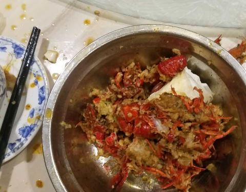 没有小龙虾的夏天是不完整的! 今夏已经刷了好几顿小龙虾,但还是要为这家虾乐园疯狂打call 店的位置的确不是很方便,地铁不能直达 来吃之前还埋怨小伙伴选了这家,明明那么多网红龙虾不吃 但吃完以后,满嘴辣油...没有小龙虾的夏天是不完整的! 今夏已经刷了好几顿小龙虾,但还是要为这家虾乐园疯狂打call 店的位置的确不是很方便,地铁不能直达 来吃之前还埋怨小伙伴选了这家,明明那么多网红龙虾不吃 但吃完以后,满嘴辣油,欲罢不能,还想再来! 环境满灵的,够大够宽敞,一楼晚上有驻唱,我们在二楼包厢里自得其乐 平时人少,一般就选择十三香和黄焖口味尝尝鲜 这次人够数,可以敞开肚皮大吃一顿 点了冰镇、黄焖、蒜香、十三香、干煸、还有带膏皮皮虾 冰镇小龙虾 墙裂推荐点大虾,冰镇吃得出新鲜度,自带仙气出场,虾肉超有弹性,头上的黄都是满满的,不用沾芥末,本身就带着鲜甜味儿 蒜泥小龙虾 其实我平时不太会选择这款,蒜泥味怕太重,但这家的蒜泥配料太赞了,越吃越香,之后选择了泡饭,舀一勺蒜泥汤汁,你会知道,什么是直击灵魂的泡饭,惊艳之作,之前未曾有 黄焖&十三香小龙虾 微甜的黄焖味,麻辣的十三香,同样都加入了香糯的年糕,浸在汤汁里特别入味,龙虾个头也很大,吃起来吮指难忘 带膏皮皮虾 几乎每个虾都有手掌那么长,每一个里面都要红红的膏,太满足了,只是吃起来一定要当心,很容易被刺到