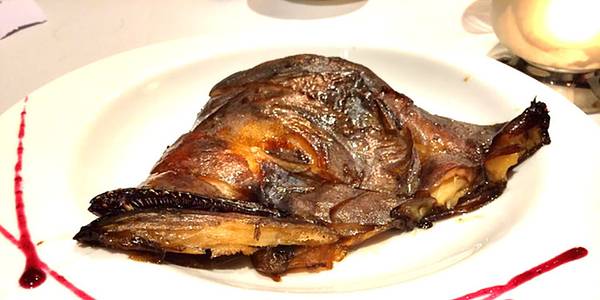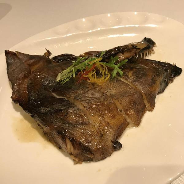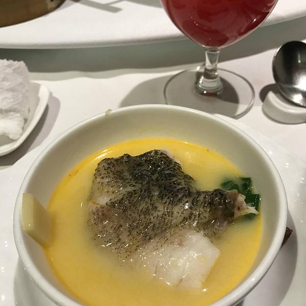 点菜首当其冲的点招牌浓汤鱼。据说是用自柬埔寨的笋壳鱼,如果大家去过吴哥窟,会在岩洞上看见雕着一些鱼,那些就是笋壳鱼,它们以前在柬埔寨的地位跟印度的神牛差不多,是吃不得的国鱼,鲜嫩的肉质胜过各种海鱼。浓汤则用母鸡、猪骨、牛骨,金华火腿等大堆食材熬煮了12个小时,鲜得让人筷勺都不愿停。还有泡在汤里的手打鱼丸,软嫩得需要像对待豆腐一样剜着吃,真的很美味。