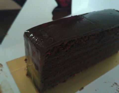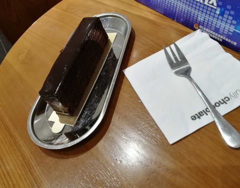 - 蛋糕巧克力味很浓,但是蛋糕表层的糖脆层有点过甜,总体味道还不错,但性价比不高