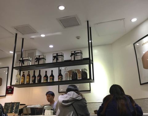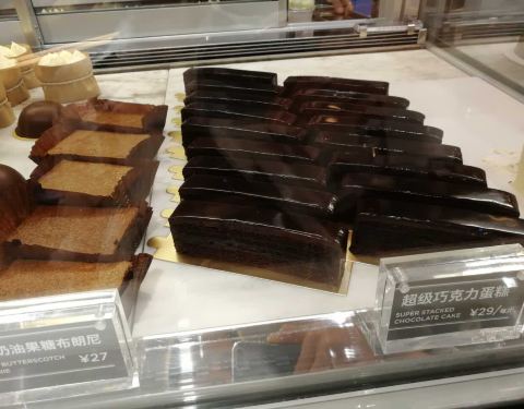 公蛋糕饮料价位都在三四十快,冰淇淋现在没有供应。虽然店里有座位,但是感觉上还是以外卖为主。买了一块无面粉巧克力蛋糕,回去跟妈妈分享。蛋糕巧克力味很浓,但是蛋糕表层的糖脆层有点过甜,总体味道还不错,但性价比不高。