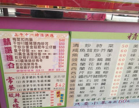 住在上环的宜必思,酒店的斜对面就是新五龙粥面茶餐厅。菜单倒是挺丰富的,有炒牛河、公仔面、乌冬、米线,还有各种的炒菜。乍一看各样炒菜的价格都是60块,像鱼香茄子、椒盐猪扒、黑椒牛柳,通通都是60块,当时...