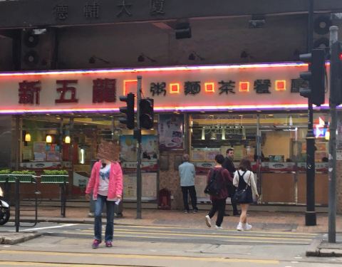 时常会看见有人拖着行李箱来到新五龙粥面茶餐厅用餐,因为这家餐厅就在上环宜必思的对面,退了房后来...
