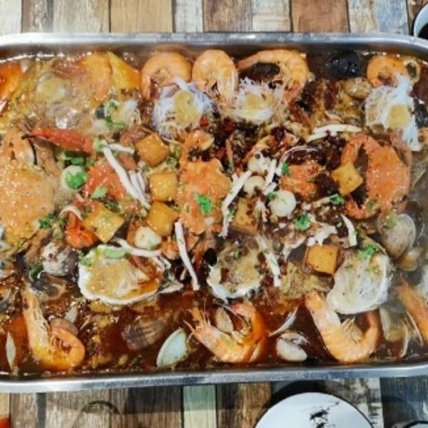 海鲜大咖是现在比较流行的一种吃法,各式各样的海鲜放在一个大锅里面,可以清蒸的,可以辣口味的,个人还是喜欢辣的,海鲜的种类不少,蛤蜊,扇贝,大虾,蟹子,海虹,海鲜新鲜肥美,个头大,肉满,炒菜也是不错...