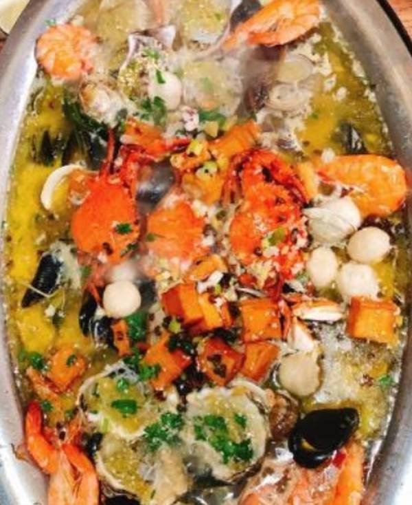 海鲜大咖是现在比较流行的一种吃法,各式各样的海鲜放在一个大锅里面,可以清蒸的,可以辣口味的,个人还是喜欢辣的,海鲜的种类不少,蛤蜊,扇贝,大虾,蟹子,海虹,海鲜新鲜肥美,个头大,肉满,炒菜也是不错的选择,如果去的人少,一定要少点,因为菜量很大,吃到撑也吃不完
